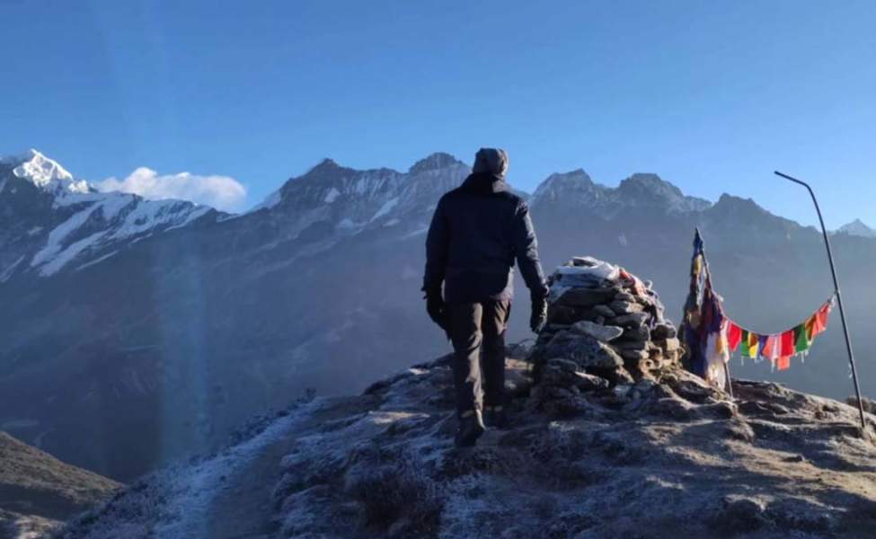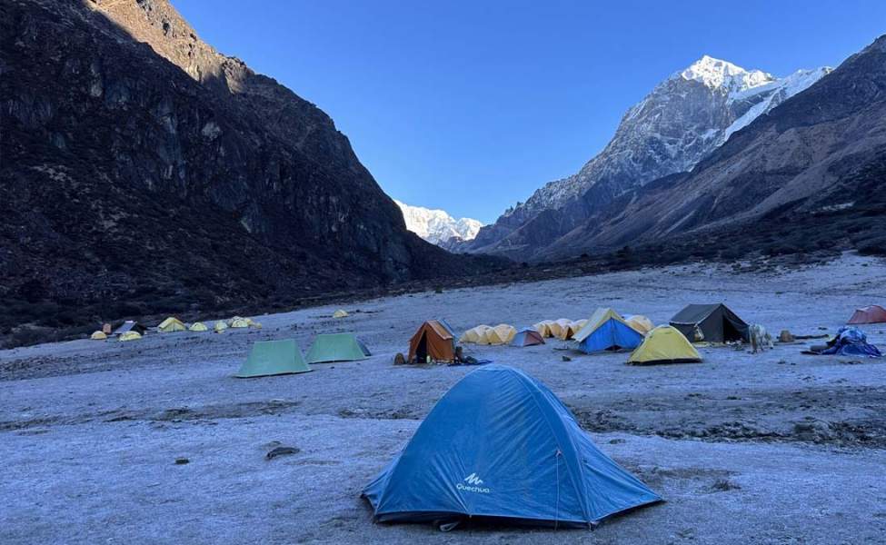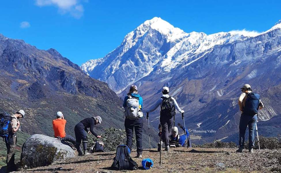 Dzongrila provides a scintillating view of Rathong Glacier, Kabru Dome, Freys Peak, Talung and trek back to Dzongri Camp. Halt Hut or Tented camp.
